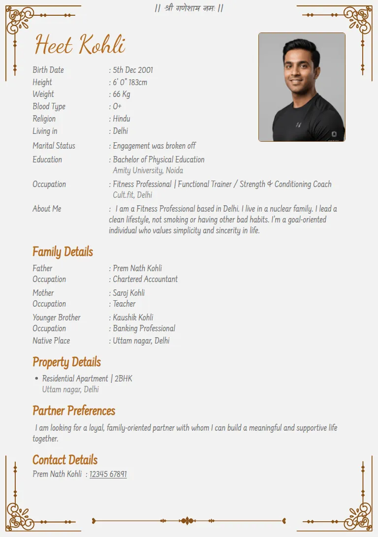 Marriage biodata templates or format design, Sehra Classic